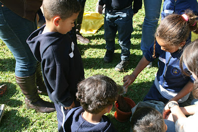 Quarta-feira, dia 19 de Setembro, quase Primavera! E os pequenos alunos da Escola Municipal Major Júlio Frederico Koeler, no Retiro, participaram da contação da história “O castor jardineiro”, de Lars Klinting, sobre o castor que plantou sementes de feijão junto com seu amiguinho. Depois de terminada a contação, imitando a história, também plantamos nossos feijõezinhos! A criançada adorou, participou, foi super legal! Depois mostramos a eles vários pezinhos de feijão crescidos... Foi ótimo, o dia estava lindo, ensolarado, e as crianças sempre adoráveis!! É isso, pessoal, olhem as fotos logo abaixo e vejam um pouco desse momento maravilhoso! Até mais, beijinhos!!